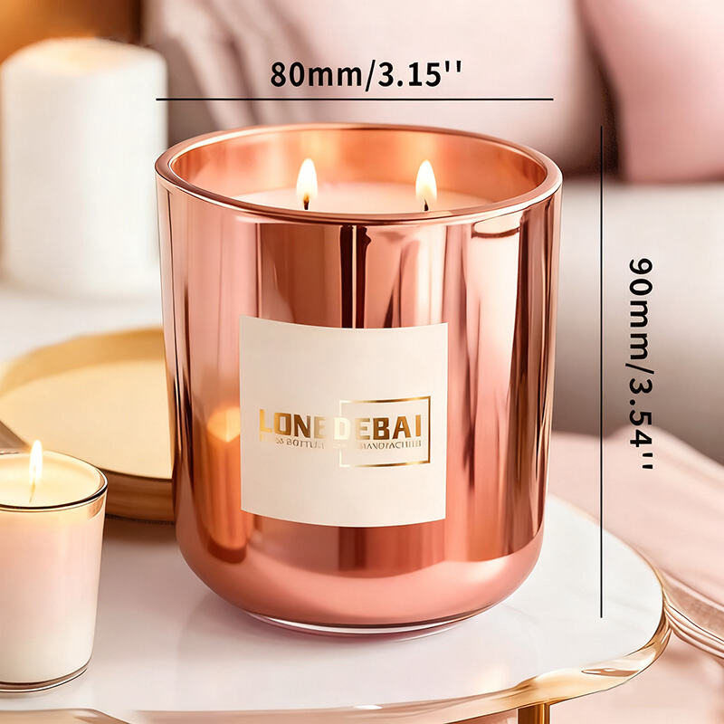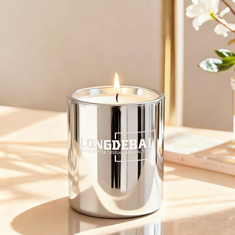 This candle jar is crafted from heat-resistant glass and finished with a reflective electroplated coating, offering a sleek metallic sheen in a range of colors. Designed for bulk orders and OEM customization, it’s ideal for brands seeking high-end packaging solutions. The smooth surface enhances visual appeal while maintaining durability, making it suitable for both home fragrance and decorative gift use. The snug-fitting lid ensures safety and scent retention, and the jar remains stable even under heat during candle burning.